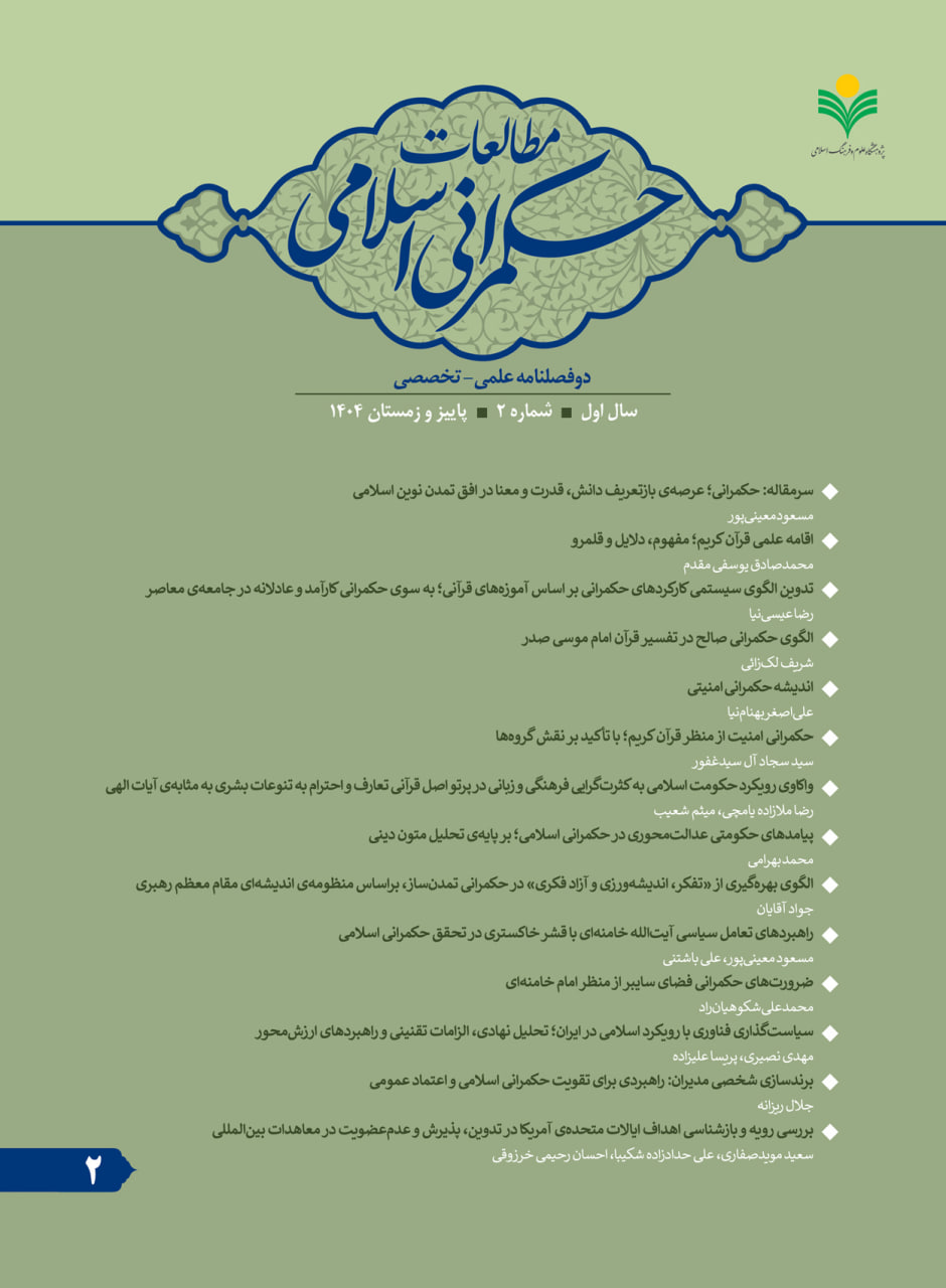 . تدوین الگوی سیستمی کارکردهای حکمرانی بر اساس آموزه های قرآنی به سوی حکمرانی کارآمد و عادلانه در جامعه ی معاصر «رضا عیسینیا»