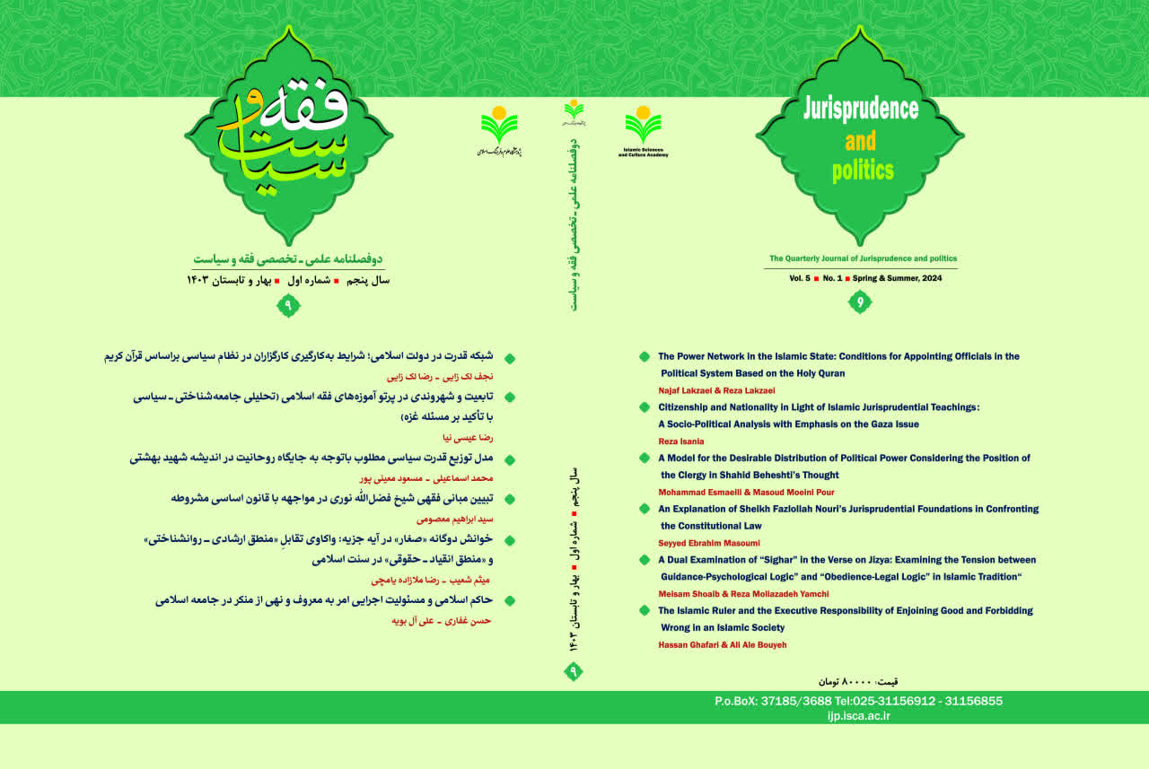 - تابعیت و شهروندی در پرتو آموزههای فقه اسلامی (تحلیلی جامعهشناختی-سیاسی با تأکید بر مسئله غزه)، اثر رضا عیسینیا